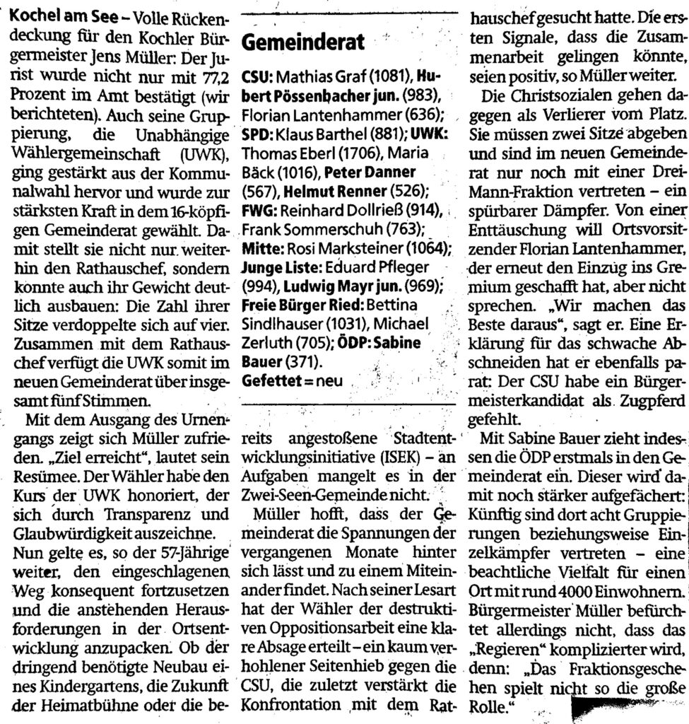 Nach Auffassung der „Freien Wählergemeinschaft in der Zwei-Seen-Gemeinde“ wäre es ratsam gewesen, den Bürger im Vorfeld anzuhören. Ein gleiches Verfahren wandte die FWG bei der Frage „Erhalt oder Abriß von Flake“ an. Mit der überwältigenden Mehrheit der Bevölkerung gelang es uns den Bürgerwillen zu vollziehen und aus dem Flake Gelände wieder einen Familienbadestrand zu formen.